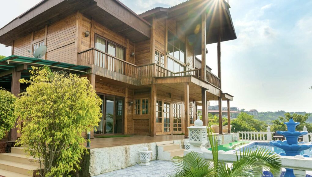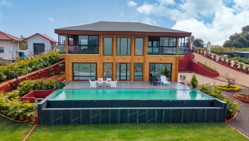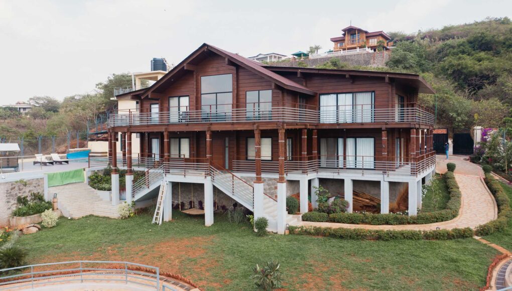 Perched atop a half-acre estate with breathtaking views of the Sahyadri valley, this exquisite 4 BHK wooden log house is a blend of luxury and nature. Crafted from the finest Russian pinewood, this villa offers an escape into serenity, where rustic charm meets modern amenities. Step into a world of elegance as you enter the […]