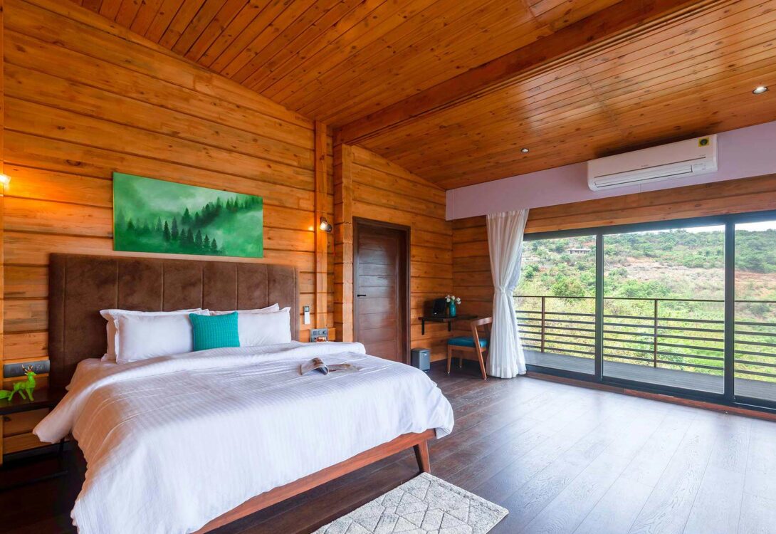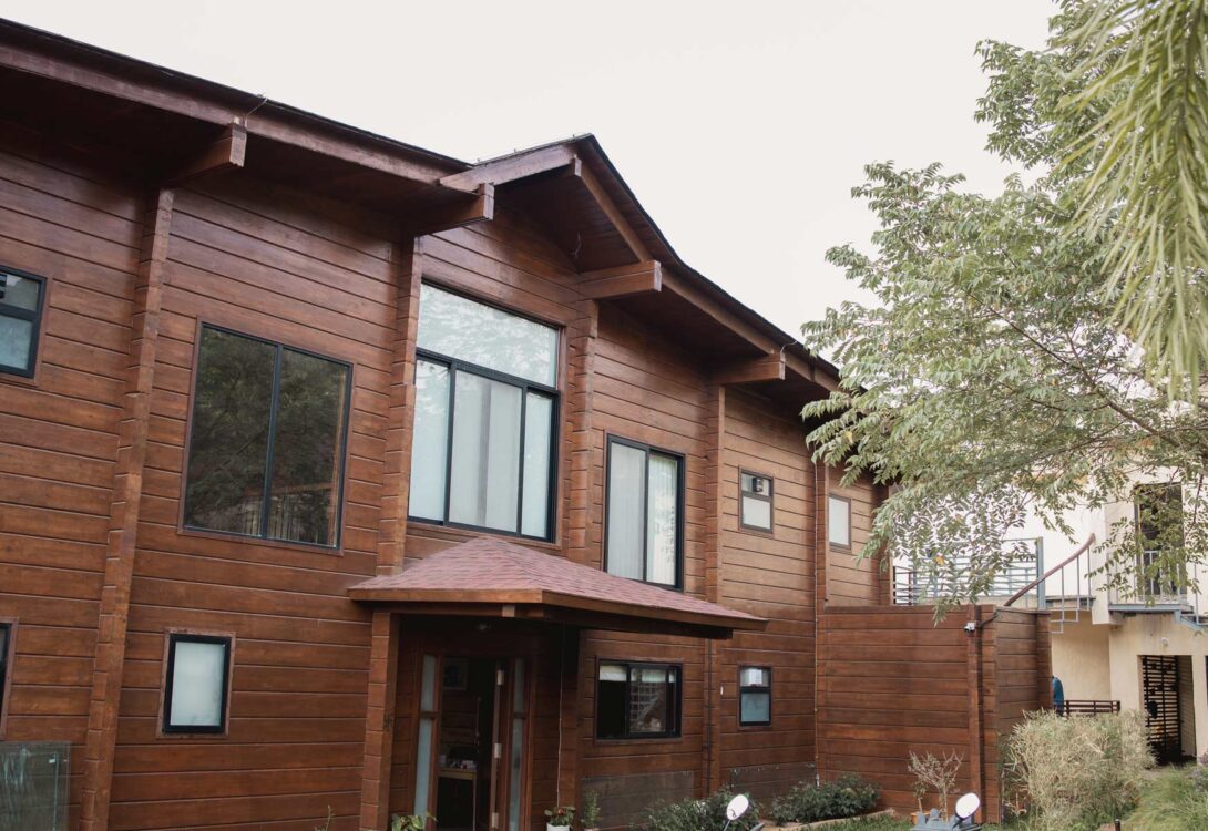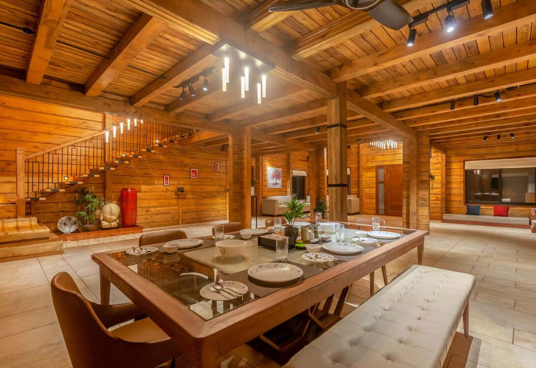 Built using premium Russian Pinewood, the villa exudes warmth and sophistication, with spacious interiors that create a cozy yet open atmosphere. The thoughtful design incorporates large windows and glass doors, allowing abundant natural light to pour in while offering breathtaking views of the surrounding mountains and valleys.