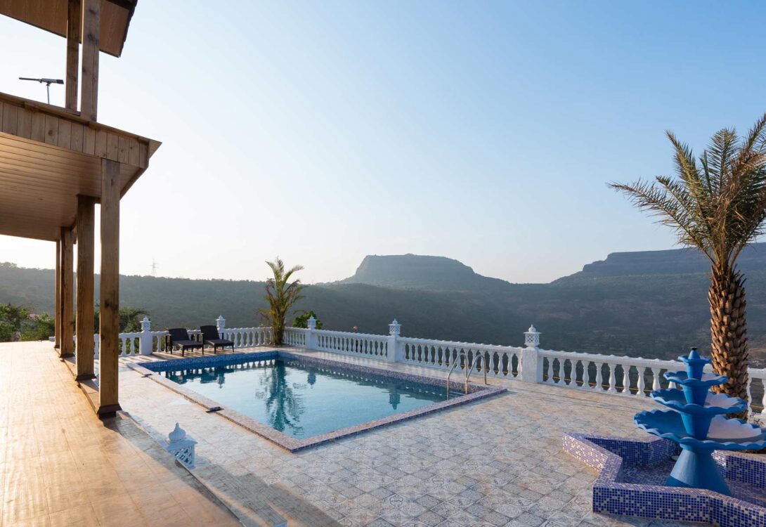 Perched atop a half-acre estate with breathtaking views of the Sahyadri valley, this exquisite 4 BHK wooden log house is a blend of luxury and nature. Crafted from the finest Russian pinewood, this villa offers an escape into serenity, where rustic charm meets modern amenities.