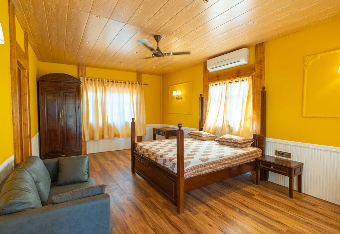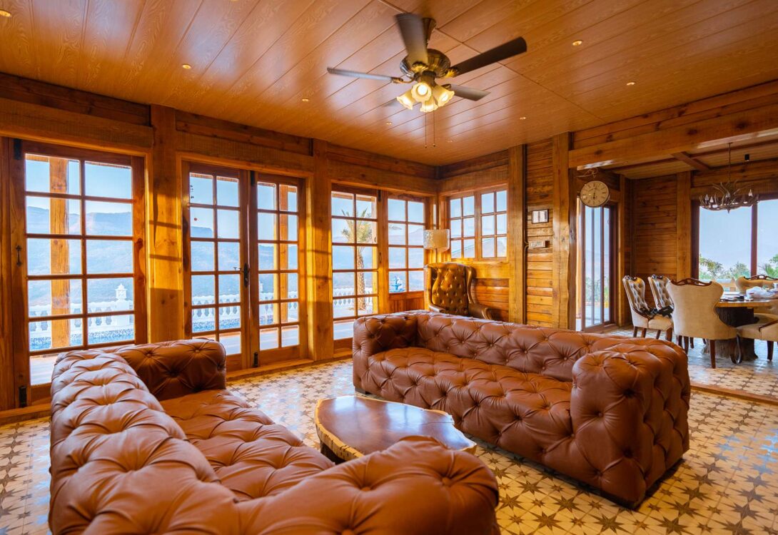 Step into a world of elegance as you enter the spacious living area, designed with high wooden ceilings, warm lighting, and plush furnishings. The large glass windows frame the scenic valley, allowing natural light to illuminate the interiors. The open-concept layout ensures a seamless flow between the living, dining, and kitchen spaces, creating a perfect setting for family gatherings. Each of the four bedrooms is a private sanctuary, offering cozy wooden interiors, comfortable bedding, and attached balconies that open to the lush greenery. The master suite boasts an expansive terrace, ideal for enjoying your morning coffee while soaking in the misty mountain views.