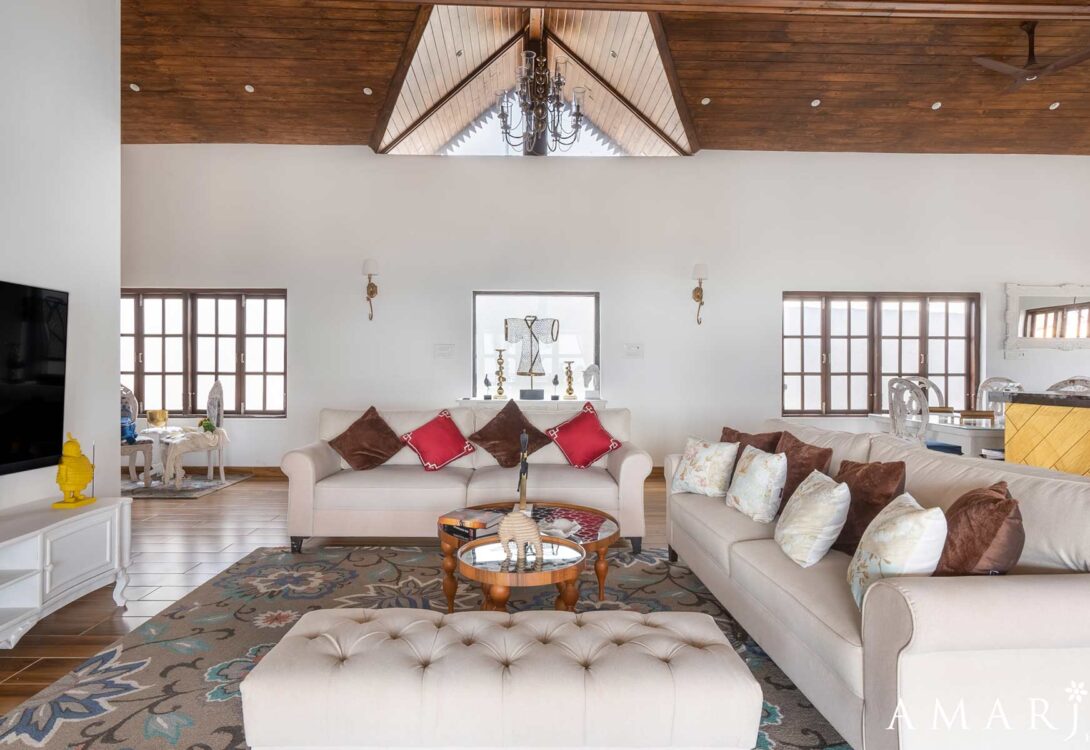 Step into the spacious living area, where vintage aesthetics meet contemporary luxury. Thoughtfully designed interiors, high ceilings, and large arched windows create a warm and inviting ambiance, allowing natural light to flood every corner of the home. The villa features four beautifully appointed bedrooms, each designed for absolute comfort, complete with plush bedding and scenic views of the lush surroundings.